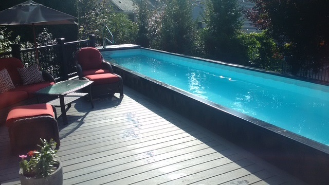 We offer a selection of Shipping Container Pools 20 feet, 30 feet and 40 feet long. We can go as wide as 12 feet and up to 8 feet deep on our smaller pools.